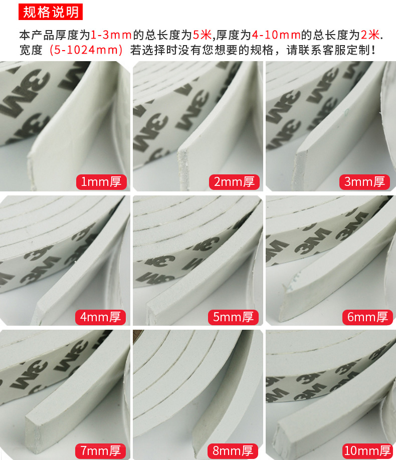 介紹EVA海綿雙面膠以EVA海綿為基材,粘性超強、持久粘性、撕后無